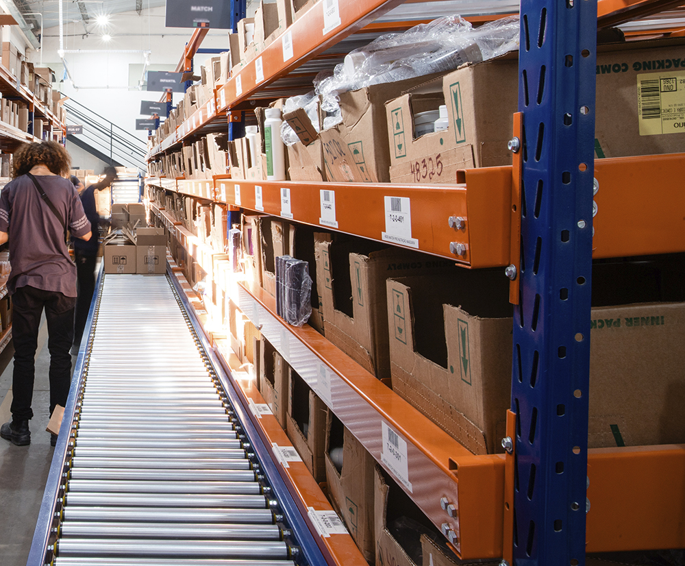 A estante Flow Rack é abastecida por um lado e desabastecida pelo outro lado, possibilitando a aplicação da metodologia FIFO. O produto desloca-se pelas esteiras com rodízios plásticos através da ação da gravidade, tornando a operação muito mais ágil e organizada.